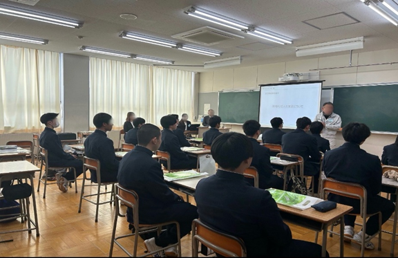 1月21日に米沢鶴城高等学校(2年生対象)の出前授業をする機会をいただき、代表をはじめ9名の職員で訪問しました。